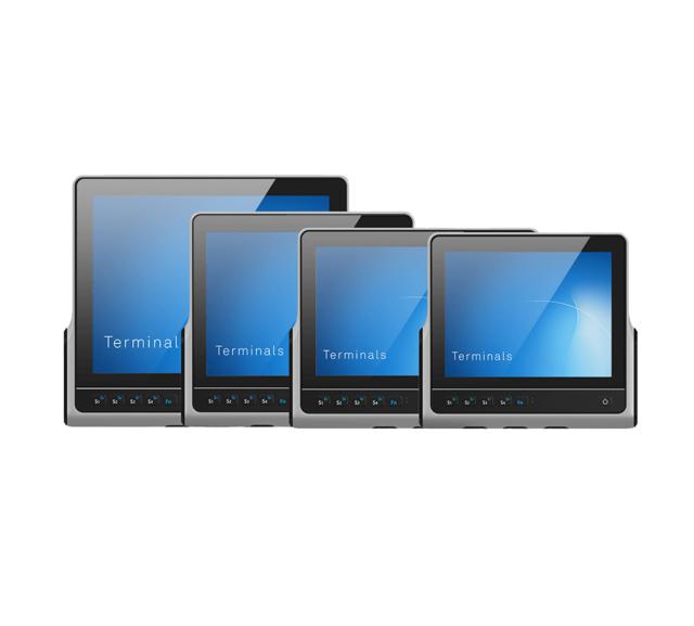 Bezwentylatorowe terminale pojazdowe dostępne są w trzech rozmiarach: 10,4″, 12,1″ i 15,0″.